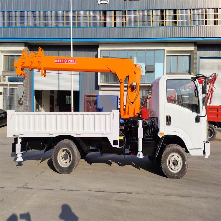 昌图县重汽豪曼小型四吨直臂蓝牌随车吊厂家 起重机价格